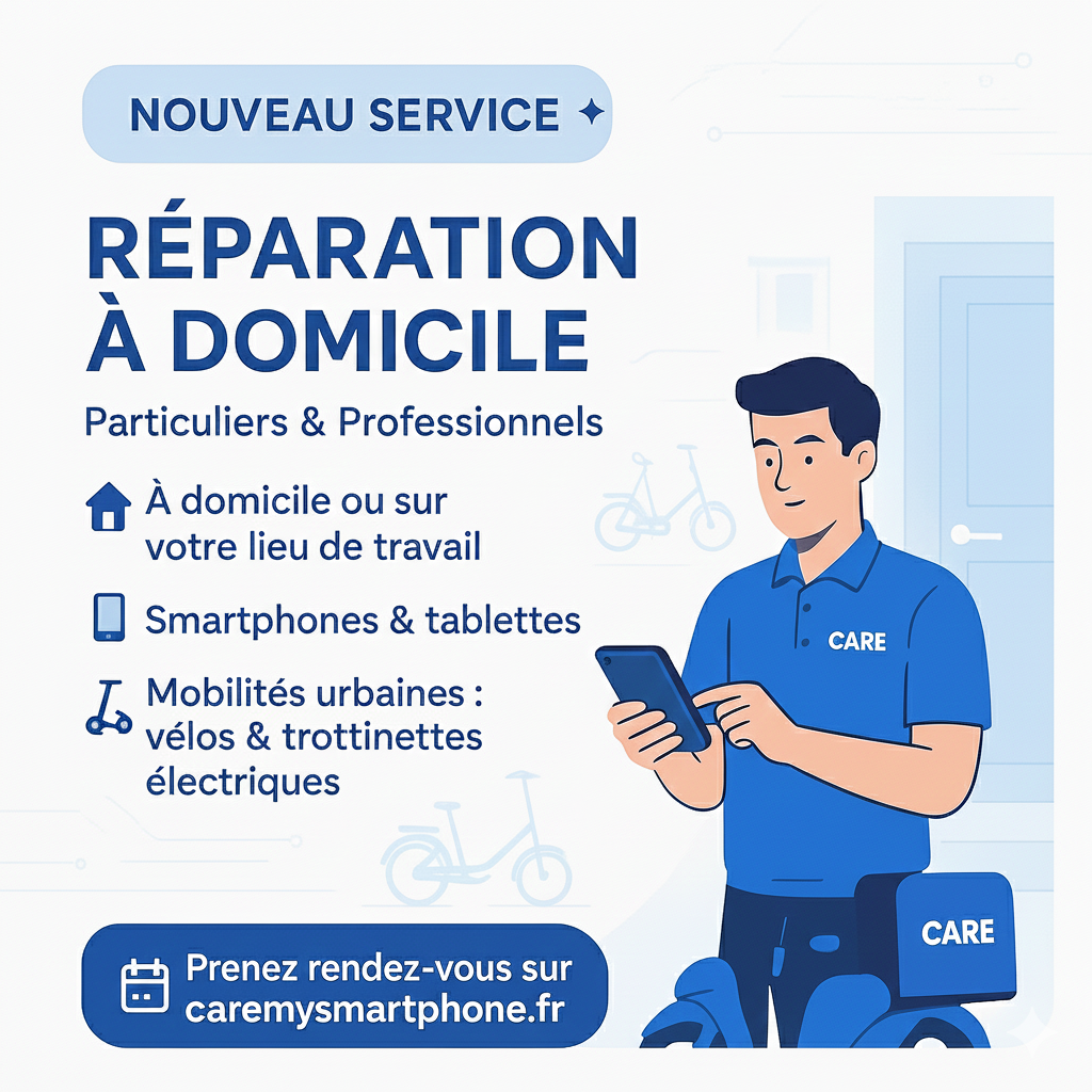 Avec Care My Smartphone, nos techniciens certifiés se déplacent désormais directement chez vous ou sur votre lieu de travail pour réparer votre smartphone ou votre tablette.